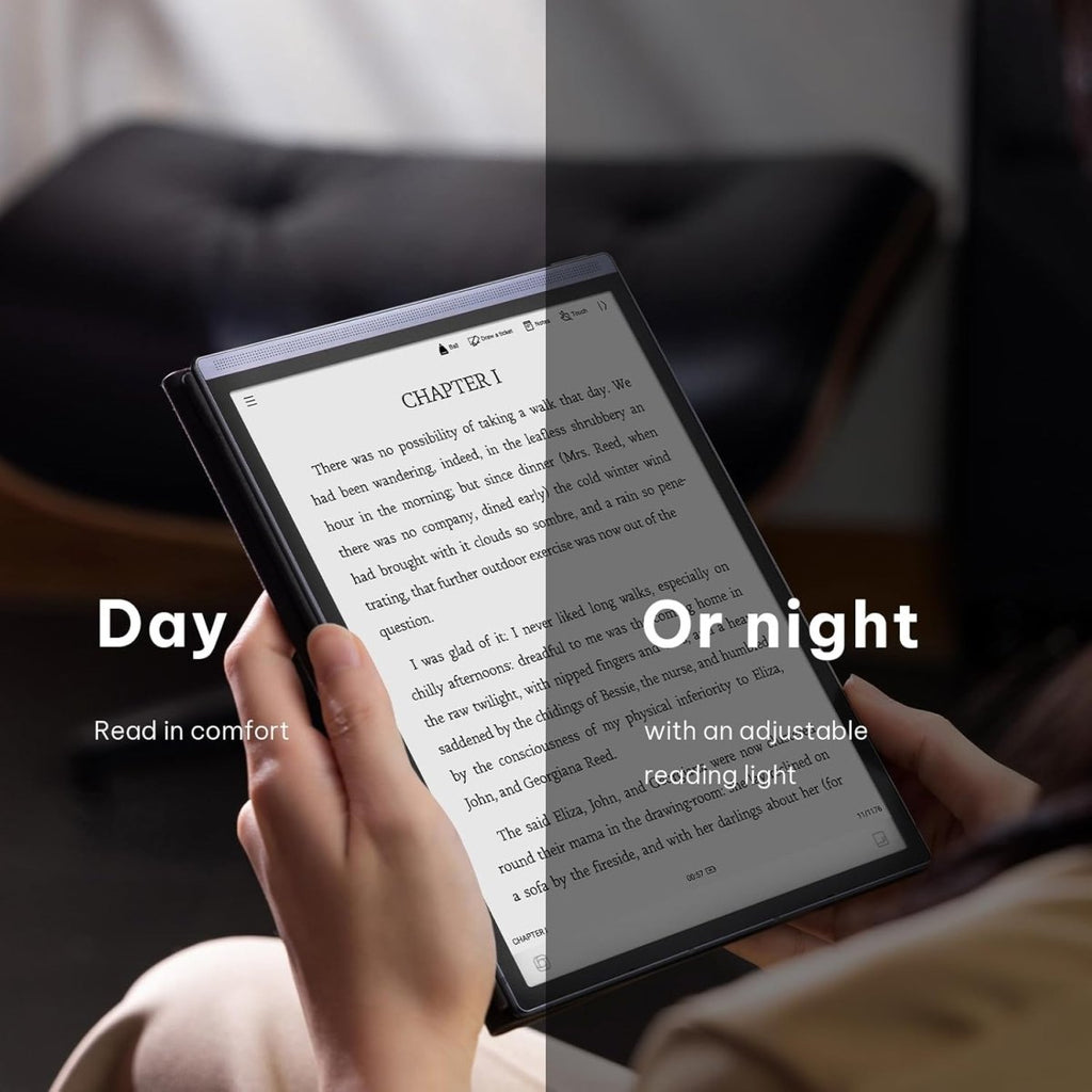 The device features a premium 8.2-inch E-Ink display that offers a glare-free, paper-like viewing experience. A 24-level adjustable reading light allows you to toggle between warm and cool tones, ensuring comfortable usage in any lighting environment—from bright sunlight to dimly lit bedrooms. The screen boasts an impressive 88.5% screen-to-body ratio, maximizing the workspace while keeping the device compact.