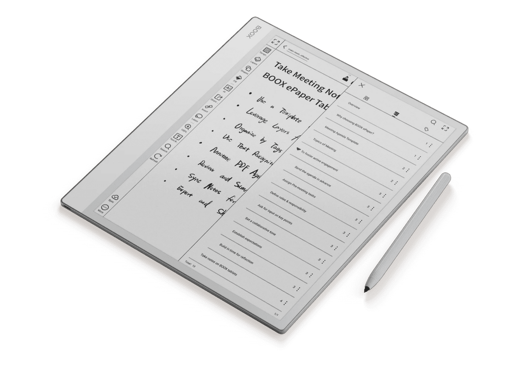 Il BOOX Note Max è la scelta definitiva per i professionisti che non vogliono rinunciare a uno schermo ampio. Porta il comfort della carta A4 nell’era digitale, alimentato dalla versatilità di Android 13. Che tu stia componendo musica, esaminando documenti legali o disegnando piani architettonici, questo potente dispositivo da 13,3 pollici ti offre lo spazio e la nitidezza necessari per eccellere. Aggiungi il BOOX Note Max al tuo kit professionale per un’esperienza di lettura e scrittura davvero senza confini.